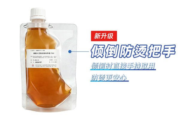 针对倾倒培养基时取用烫手的问题,新包装在袋子右侧专门增加防烫把手设计。倾倒时可直接手持取用,手指不会接触袋内液体培养基,防烫手的同时,握持感极好,无需额外佩戴手套或借助工具,既避免了烫伤风险,又简化了操作步骤,让后续倾倒更顺手。