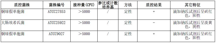 按标签用法制备培养基,接种以下质控菌株,放置36±1℃需氧培养20-24小时。