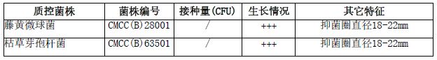按标签用法制备培养基,接种以下质控菌株,放置36±1℃需氧培养16-18小时。