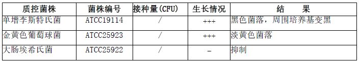 按标签用法制备培养基,接种以下质控菌株,放置36±1℃需氧培养24-48小时。