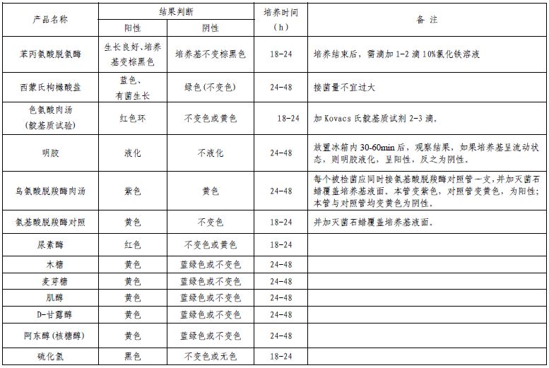 苯丙氨酸脱氨酶1支、尿素酶1支、明胶生化管1支、西蒙氏枸橼酸盐1支、鸟氨酸脱羧酶肉汤1支、色氨酸肉汤1支、氨基酸脱羧酶对照1支、木糖1支、麦芽糖1支、肌醇1支、甘露醇1支、核糖醇1支、硫化氢1支、无菌液体石蜡1支。