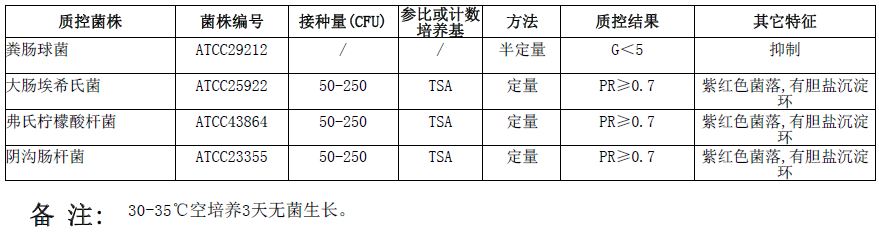 结晶紫中性红胆盐琼脂平板(9cm)微生物灵敏度试验: