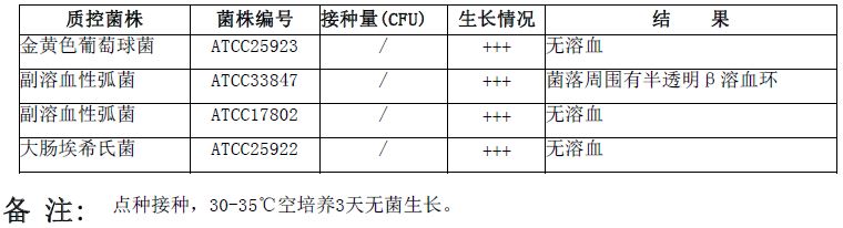 我妻氏血琼脂平板(9cm)微生物灵敏度试验: