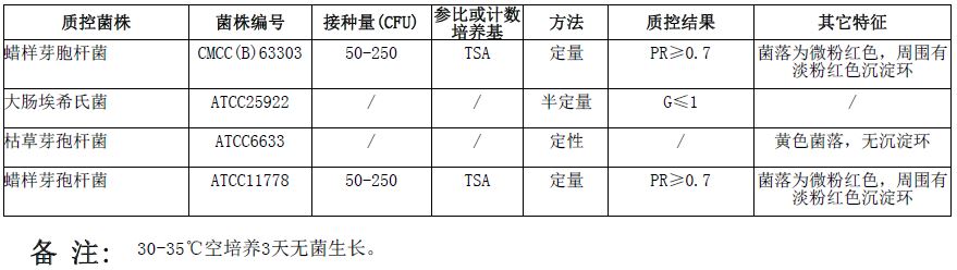 甘露醇卵黄多粘菌素琼脂平板(MYP)(9cm)微生物灵敏度试验: