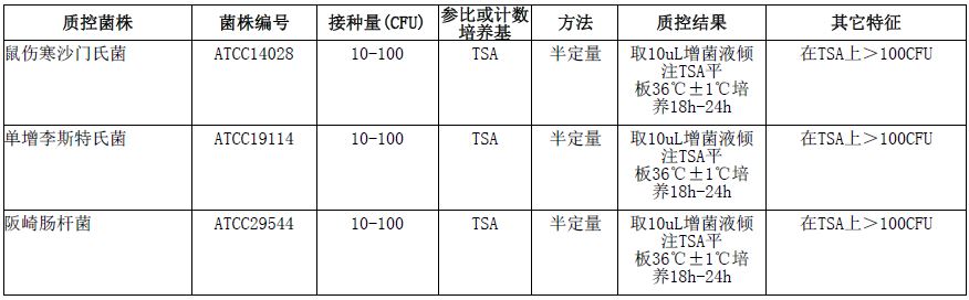 按标签用法制备培养基,接种以下质控菌株,放置36±1℃需氧培养8小时。