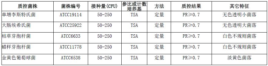 平板计数琼脂(PCA)(颗粒)(袋装)微生物质控结果: