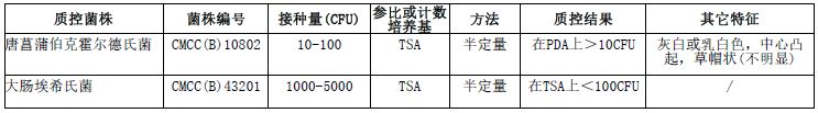 按标签用法制备培养基,接种以下质控菌株,放置36±1℃需氧培养20-24小时。