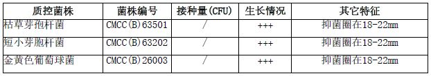 抗生素检定培养基微生物质控结果: