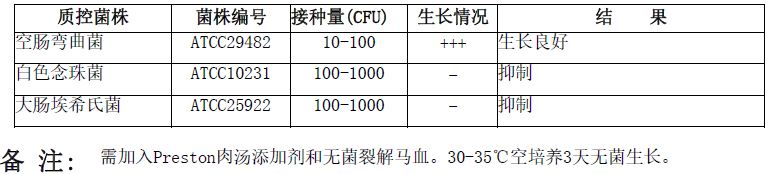 按标签用法制备培养基,接种以下质控菌株,放置42±1℃微需氧培养24-48小时。