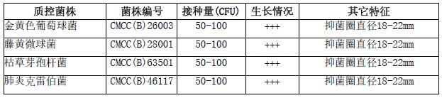 按标签用法制备培养基,接种以下质控菌株,放置36±1℃需氧培养14-18小时。