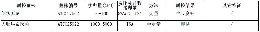按标签用法制备培养基,接种以下质控菌株,放置36℃需氧培养18-24小时。