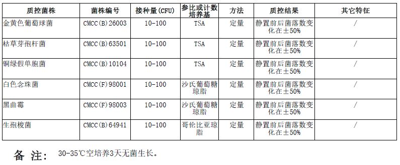 按标签用法制备培养基,接种以下质控菌株,放置20-25℃需氧培养45分钟。