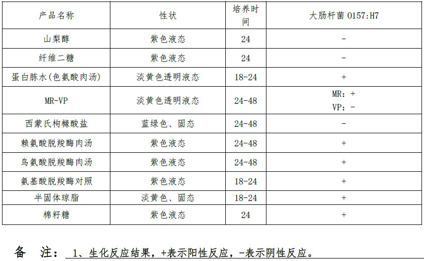 用途:用于大肠杆菌的O157:H7/MN生化鉴定(SN/T0973-2000标准)。
