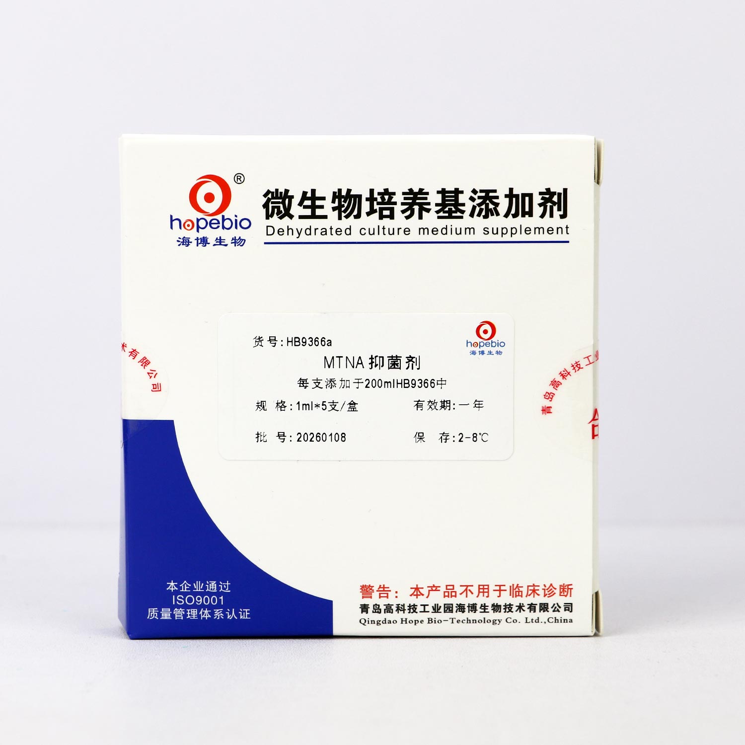每支添加于100mlHB9118或HB9119 |