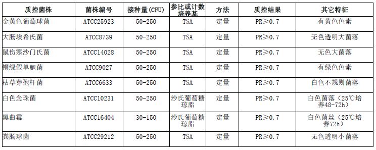 按标签用法制备培养基,接种以下质控菌株,放置36±1℃需氧培养24±2小时。