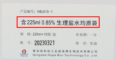B:含225mL 0.85%生理盐水均质袋