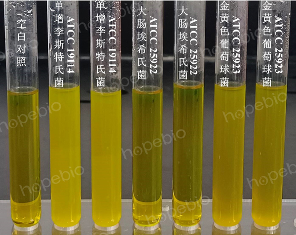 图1 质控菌株在李斯特氏菌增菌肉汤(LEB)培养基中的生长情况