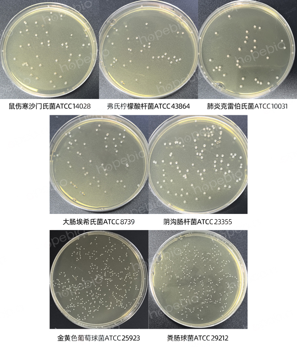 按标签用法制备培养基,接种以下质控菌株,放置36℃±1℃需氧培养24 h-48 h。培养结果如图1。