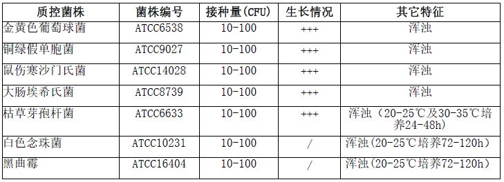 肉汤培养基A(大豆酪蛋白消化培养基)(EP标准)微生物质控结果: