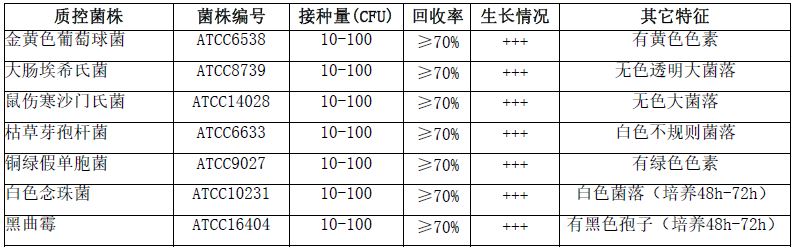 按标签用法制备培养基,接种以下质控菌株,放置30-35℃需氧培养18-24小时。