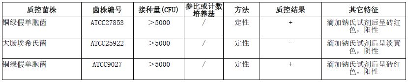 按标签用法制备培养基,接种以下质控菌株,放置36±1℃需氧培养20-24小时。
