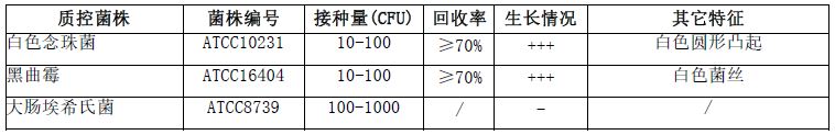 沙氏葡萄糖氯霉素琼脂(ISO标准)微生物质控结果: