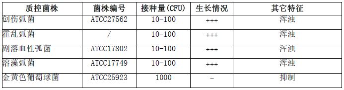 按标签用法制备培养基,接种以下质控菌株,放置36±1℃需氧培养18-24小时。
