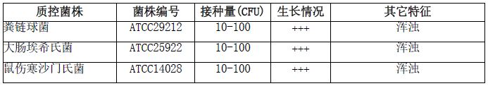 按标签用法制备培养基,接种以下质控菌株,放置45℃需氧培养48小时。