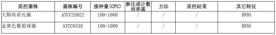 按标签用法制备培养基,接种以下质控菌株,放置36℃需氧培养18-24小时。