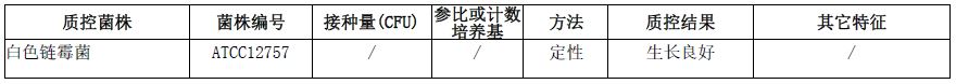 按标签用法制备培养基,接种以下质控菌株,放置28℃需氧培养72小时。