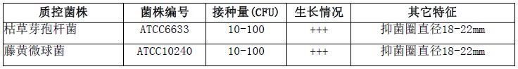 抗生素检定培养基微生物质控结果: