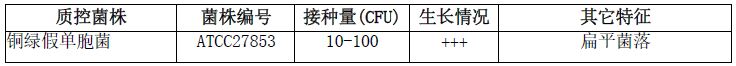 按标签用法制备培养基,接种以下质控菌株,放置36±1℃需氧培养18-24小时。