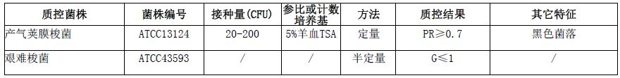 按标签用法制备培养基,接种以下质控菌株,放置36±1℃厌氧培养20-24小时。