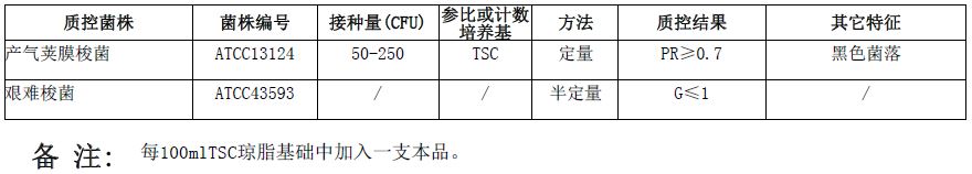 :每支添加于100ml HB0253胰月示-亚硫酸盐-环丝氨酸琼脂基础(TSC)备注