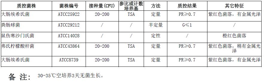 品红亚硫酸钠琼脂平板(9cm)微生物质控结果: