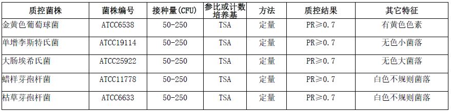 按标签用法制备培养基,接种以下质控菌株,放置36±1℃需氧培养20-24小时。