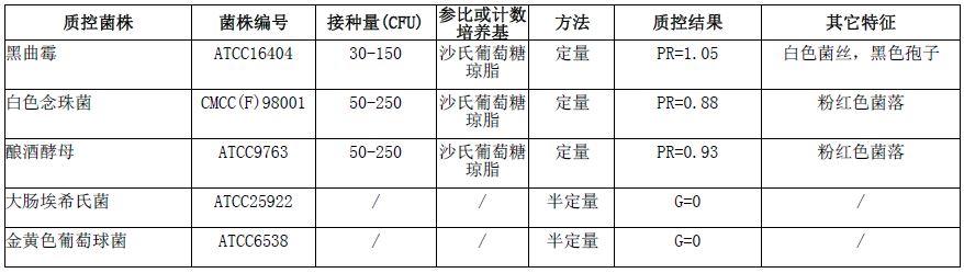 按标签用法制备培养基,接种以下质控菌株,放置28±1℃需氧培养120小时。