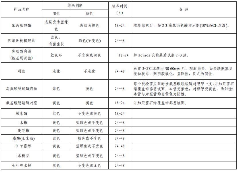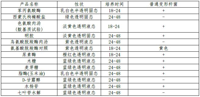 :用于变形杆菌的生化鉴定(WS/T9标准)备注