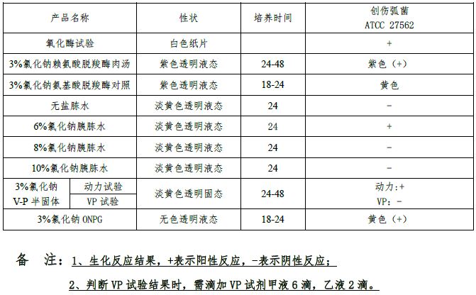 :用于创伤弧菌的生化鉴定(GB标准)备注