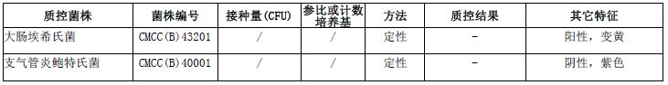 按标签用法制备培养基,接种以下质控菌株,放置36±1℃需氧培养18-24小时。