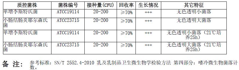 按标签用法制备培养基,接种以下质控菌株,放置6.5±0.5℃需氧培养10天。