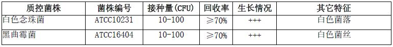沙氏葡萄糖琼脂(USP标准)微生物灵敏度试验: