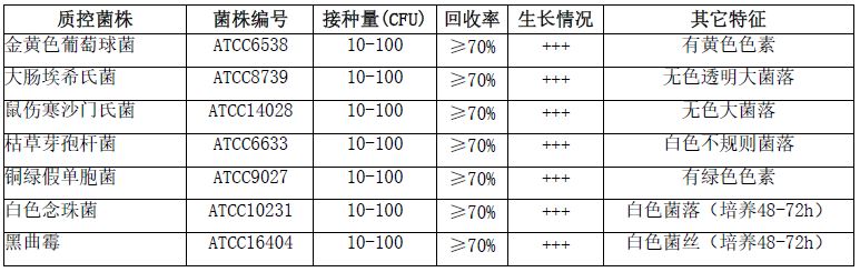 按标签用法制备培养基,接种以下质控菌株,放置30-35℃需氧培养18-24小时。