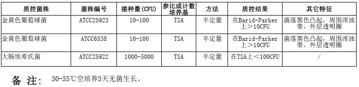 按标签用法制备培养基,接种以下质控菌株,放置36±1℃需氧培养18-24小时。