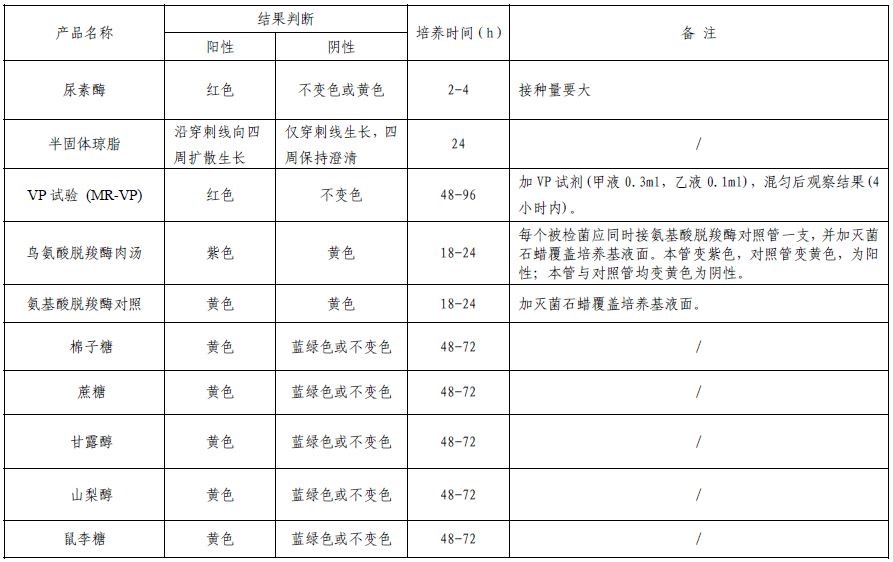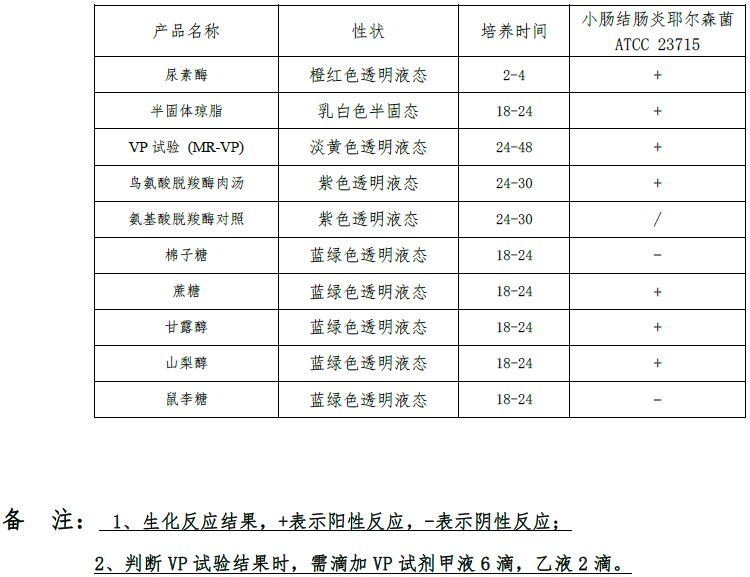 :用于小肠结肠炎耶尔森氏菌成套生化鉴定(GB/T4789.8标准)备注