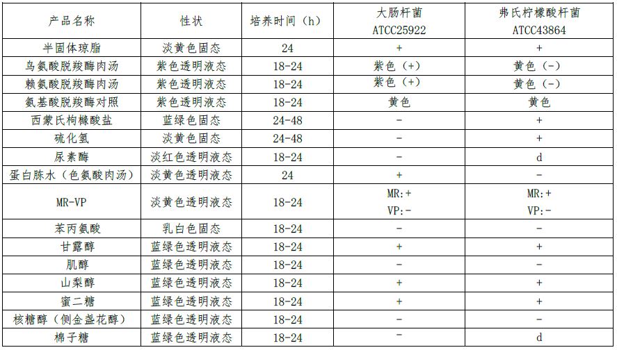 :用于肠杆菌科细菌的生化鉴定(GB 4789.41标准)备注