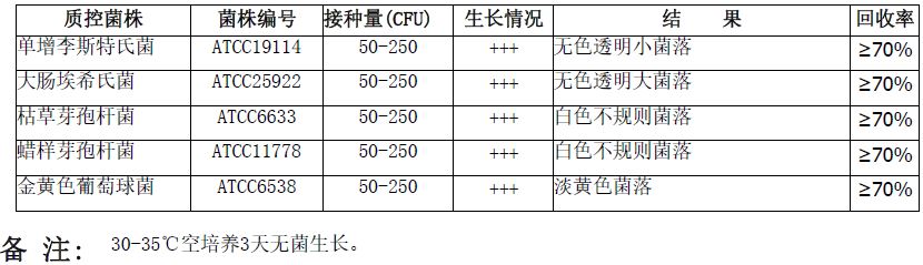 平板计数琼脂(PCA)微生物质控结果: