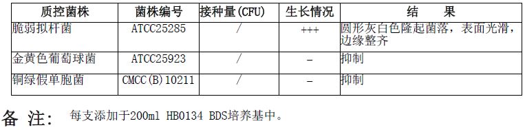 按标签用法制备培养基,接种以下质控菌株,放置36±1℃厌氧培养48-96小时。