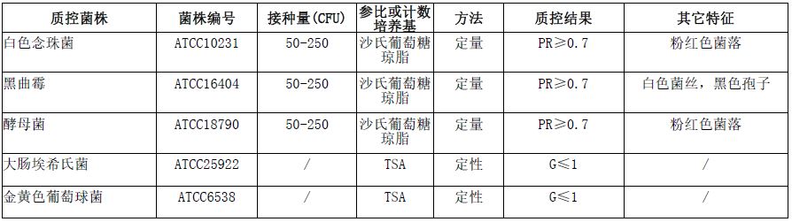 按标签用法制备培养基,接种以下质控菌株,放置28±2℃需氧培养72-120小时。
