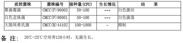 沙氏琼脂平板(含氯霉素)(9cm)微生物灵敏度试验: